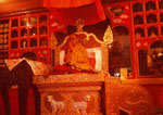 Not long after this, H.H. Dalai Lama came, for an amazing two hour visit to the centre. That's him in the gompa at this time. During this visit, he consecrated the statute. It was winter, it blew and rained. We had draped the head in cloth, with a complicated system designed to draw back the covers at the strategic moment. This was actually acheived, doubtless due to divine intervention, by monks swinging on ropes in a hilarious moment.