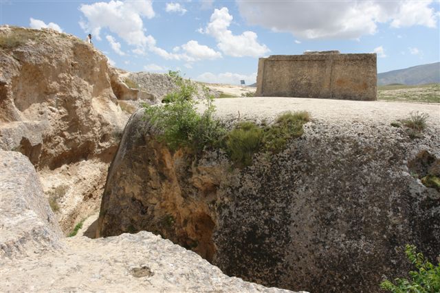 stupa is hewn into the solid rock of a large hill - and so cannot be