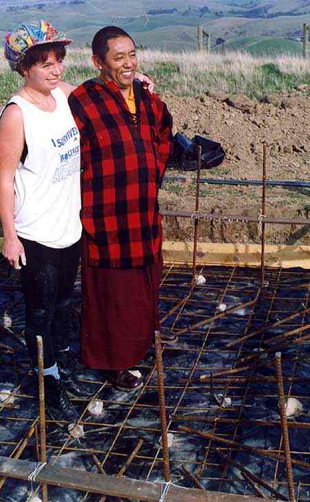 This is the Venerable Lama Samten, who lives in New Zealand. Michael and Mary, Australian friends, and invited him to come and build a stupa on their land, which is a healing centre. Lama said: "sure, and I'd like to bring one of my students to help", so I got to go too. He's posing with Mary's daughter, who was a very able participant in this one lunar month marathon.... |