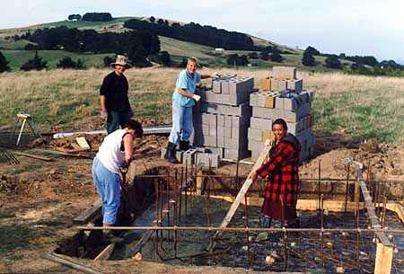 That's the crew: Lama, Michael, Mary and Sara. Michael spent a lot of time bringing water in large pickle barrels from the local town, as there wasn't any on site, and you use an amazing amount mixing concrete. |
