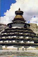 | Foundation for the Preservation of the Mahayana Tradition | There are over 100 centres around the world. many have stupas (see Gyantse next). Another example is Land of Medice Buddha, where they are in the initial stages of Building 100,000 Stupas on the land in Soquel, California. There will be one 40 foot stupa and many other 6' plus stupas and thousands more of various Stupas adding up to 100,000. They will be built on terraced land fashioned after Borabobur. |